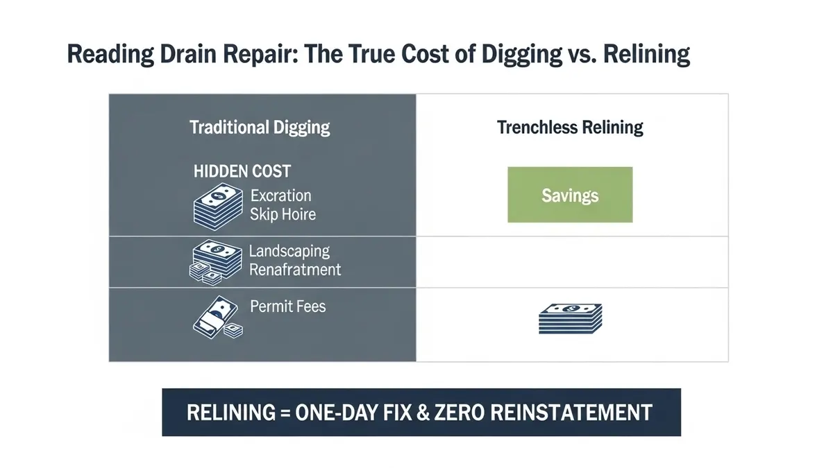 Avoid costly, messy excavations. Compare Stambridge Drain Relining vs Digging to save your home, time, and money with our expert, minimally invasive, and durable no-dig repair solutions for local drains.